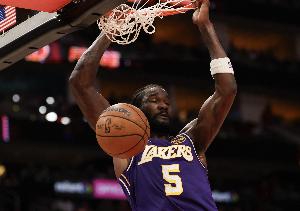 体育资讯4月10日讯 NBA常规赛,湖人上半场以53-49领先勇士。