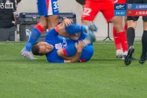 比赛第25分钟,吴曦被卢永涛放倒后痛苦倒地打滚,裁判向卢永涛出示黄牌。