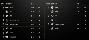 目前BLG由于胜场和小分与iG相同并列登峰组第一,LGD则因击败OMG与EDG目前均暂列涅槃组第一。