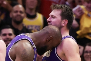 詹姆斯:东契奇整个赛季都这么打球 我们努力支援他