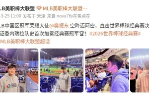MLB美职棒官博今日更新,晒出樊振东现身迈阿密观战比赛的照片,美职棒官博配文写道:“MLB中国区冠军荣耀大使樊振东空降迈阿密,直击世界棒球经典赛决赛现场!见证委内瑞拉队史首次加冕经典赛冠军!”